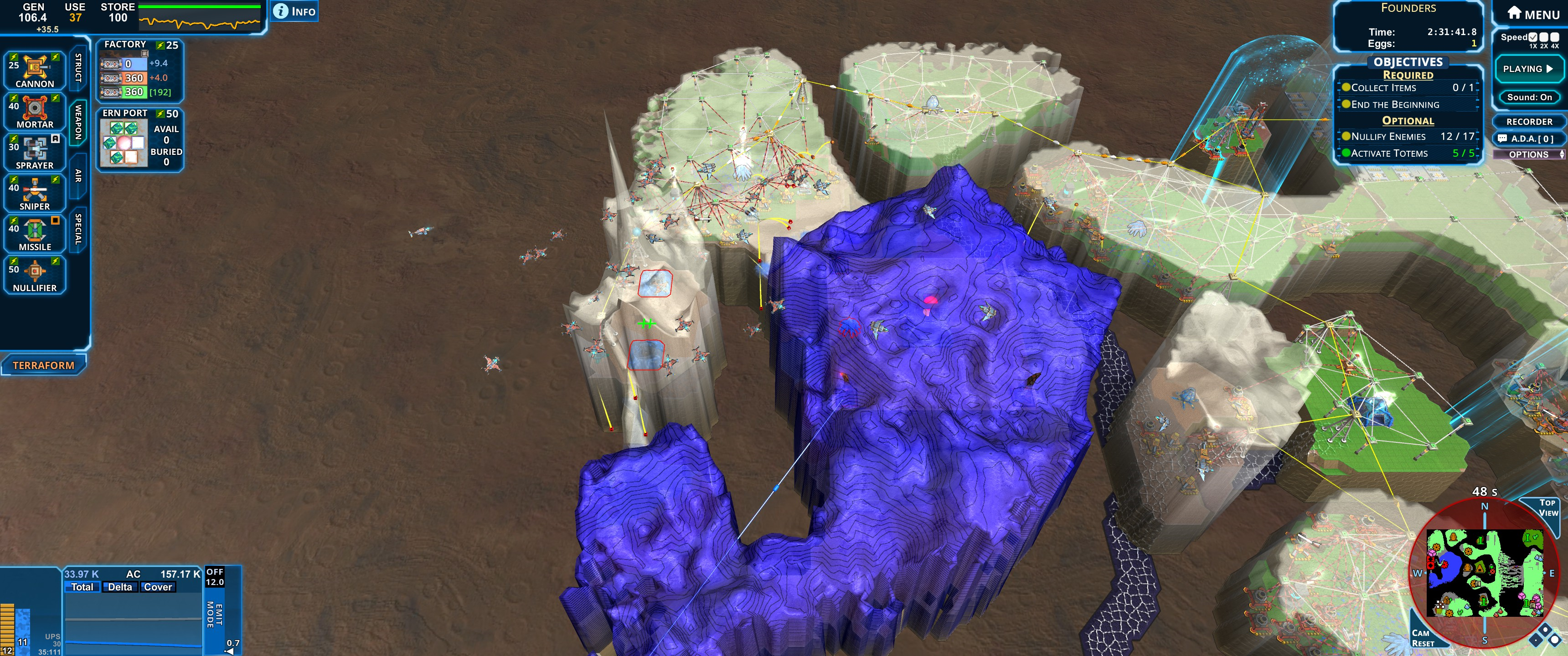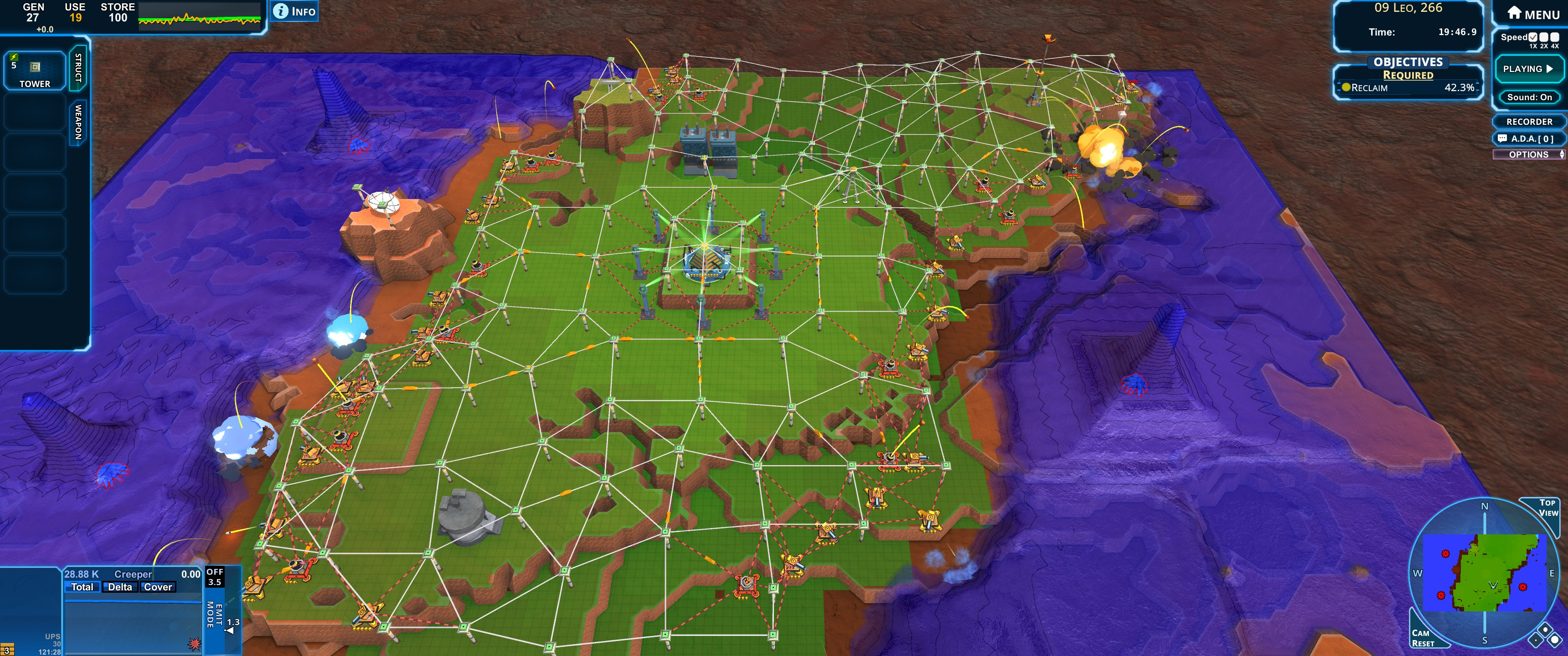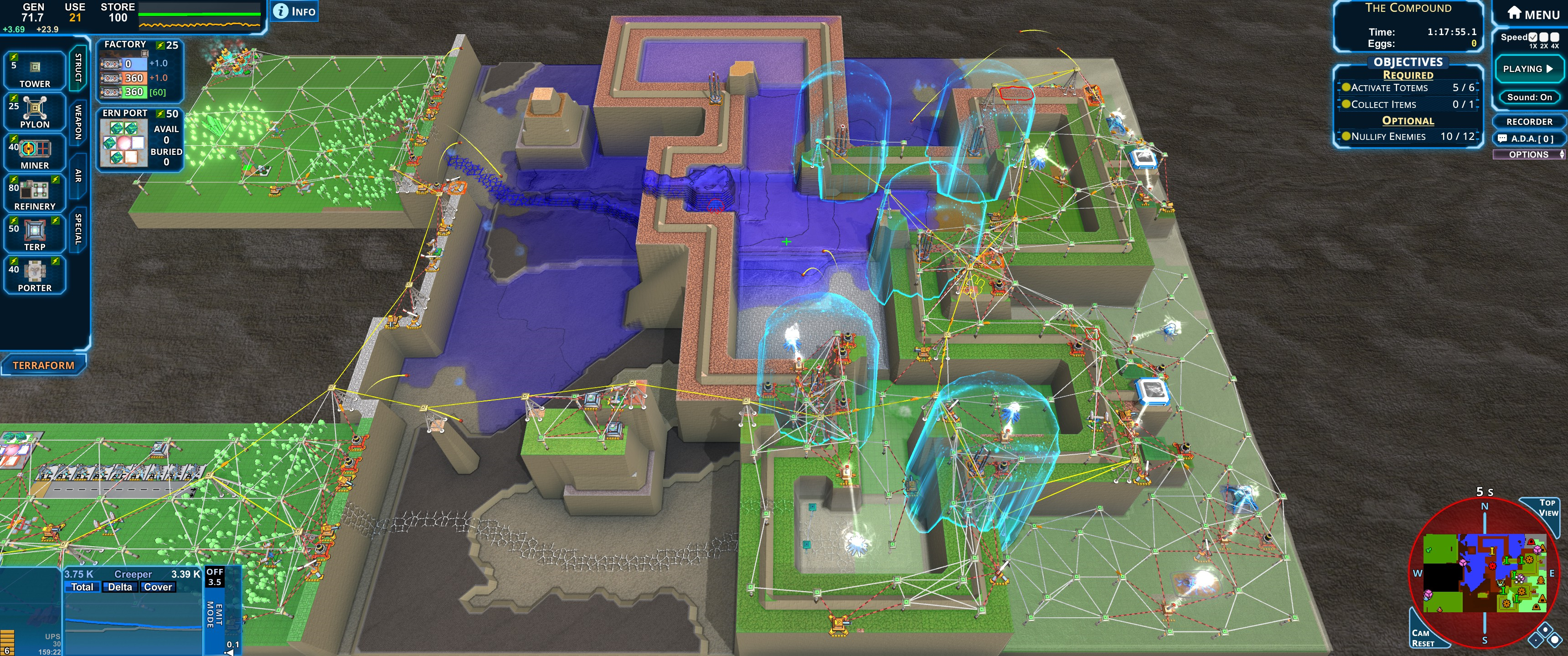 A Logistics tower defense game, where you battle against a persistently encroaching wave of goo, aka "The Creep".