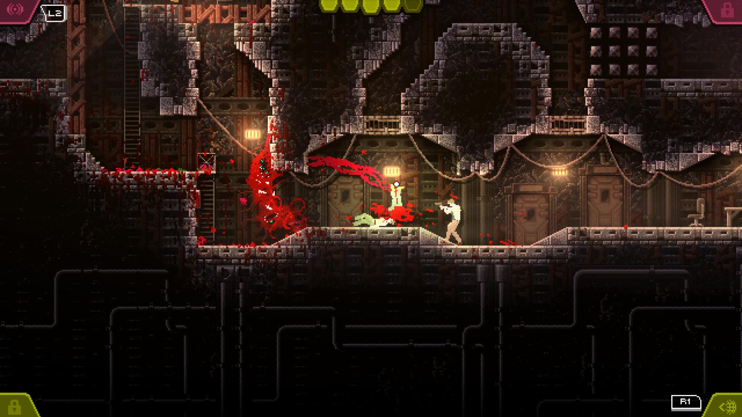 A reverse horror game, where you play as an evolving lab monster that escapes containment and terrorizes the underground research lab with the goal of escaping to devour the world.