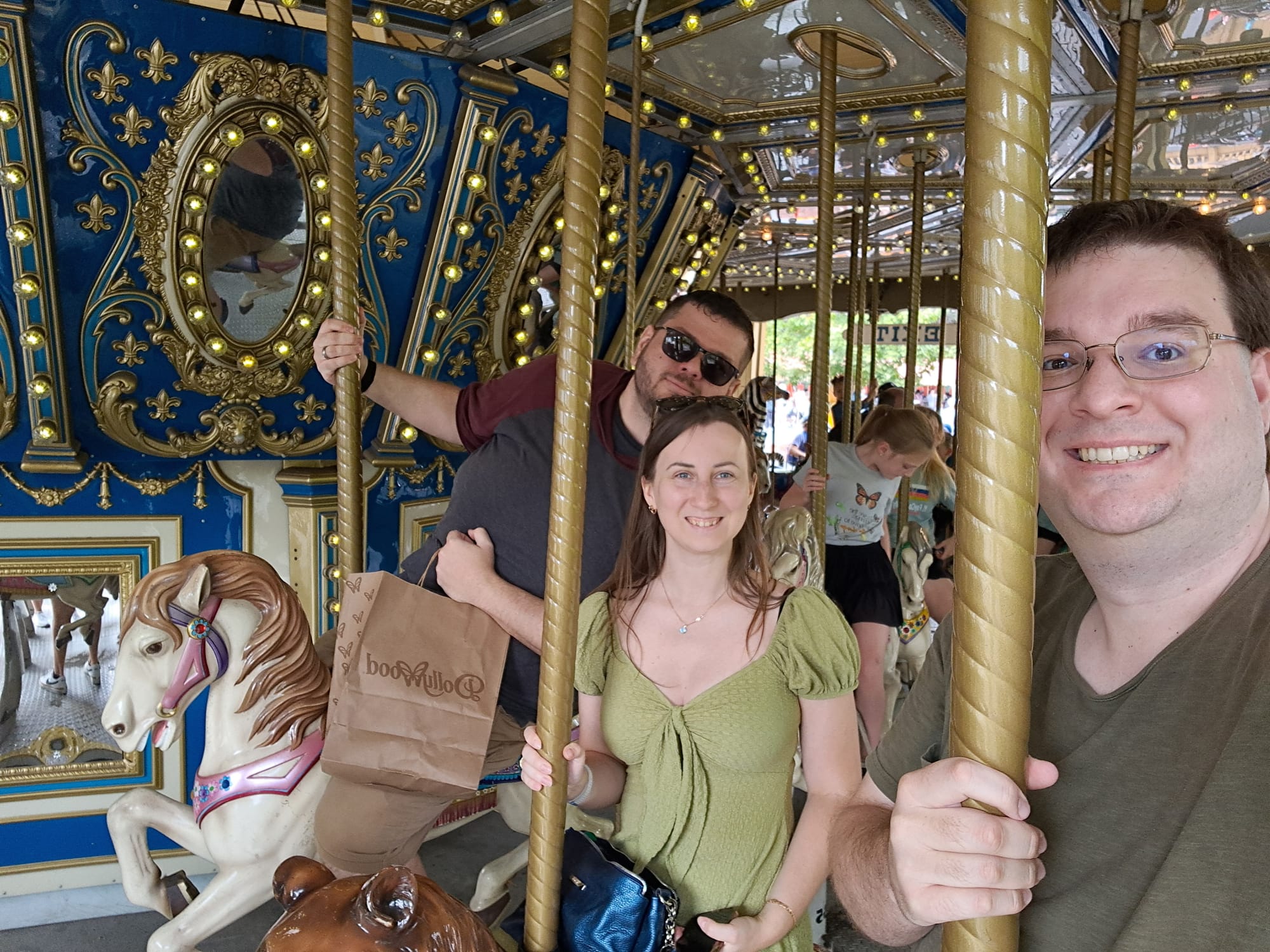 While on the way to get lunch, we passed a Merry-Go-Round that Dasha wanted to ride, Jason, Dasha and I rode it together.