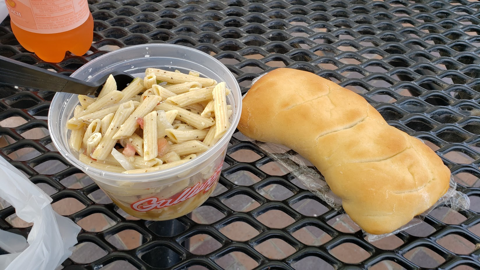 After acquiring various meats, cheeses, and Pepperoni bread, we found a table outside to sit and eat.
