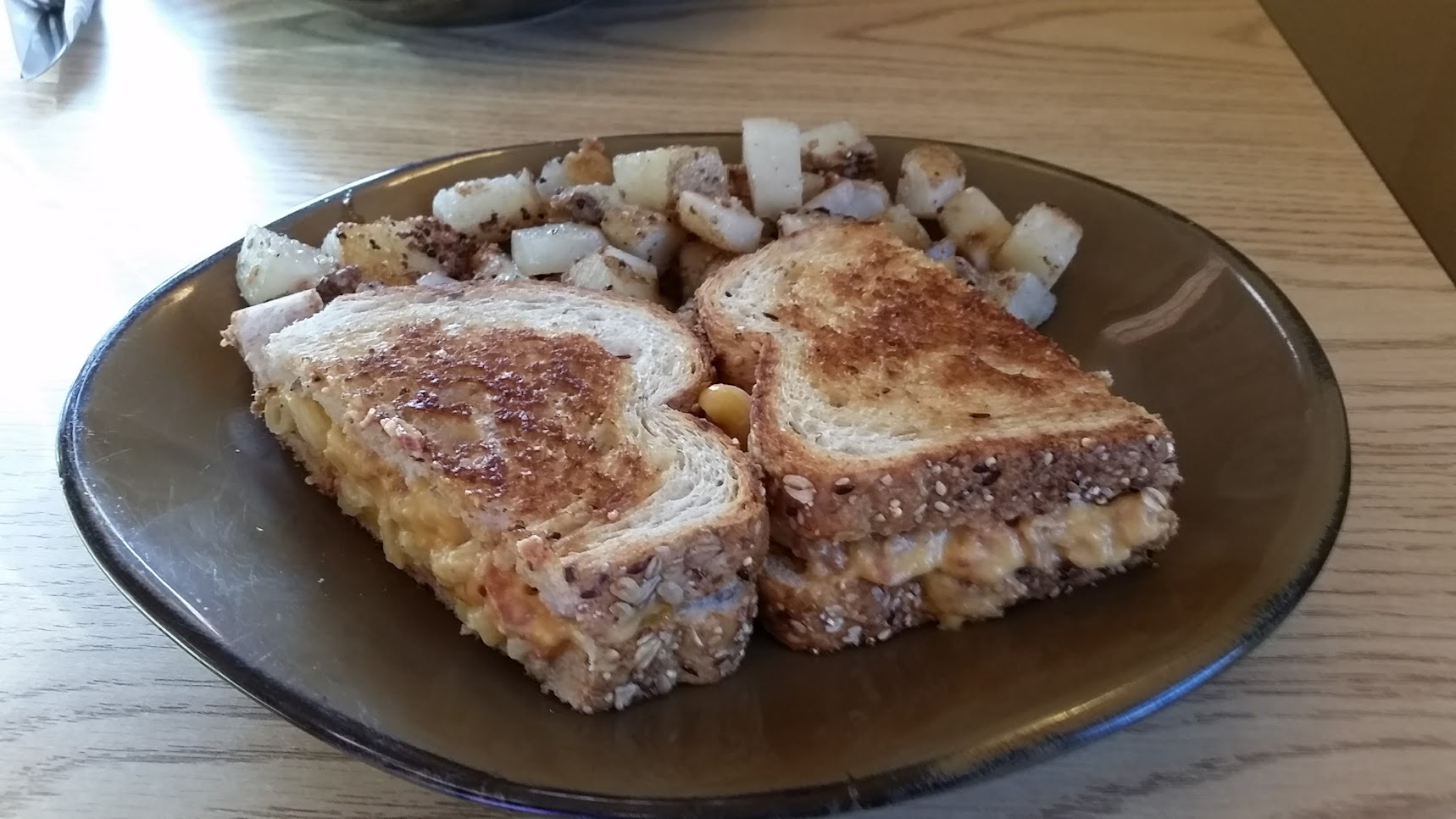 We went to a local restaurant to get grilled macaroni and cheese sandwiches.