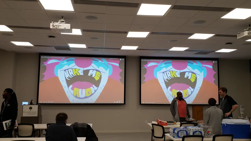 I drove up together with Wally, and though we were running a bit late, we managed to arrive just in time for the keynote to start. This year, it was held in the Cleveland foundation next door to the tech hive, which had a nice big auditorium.