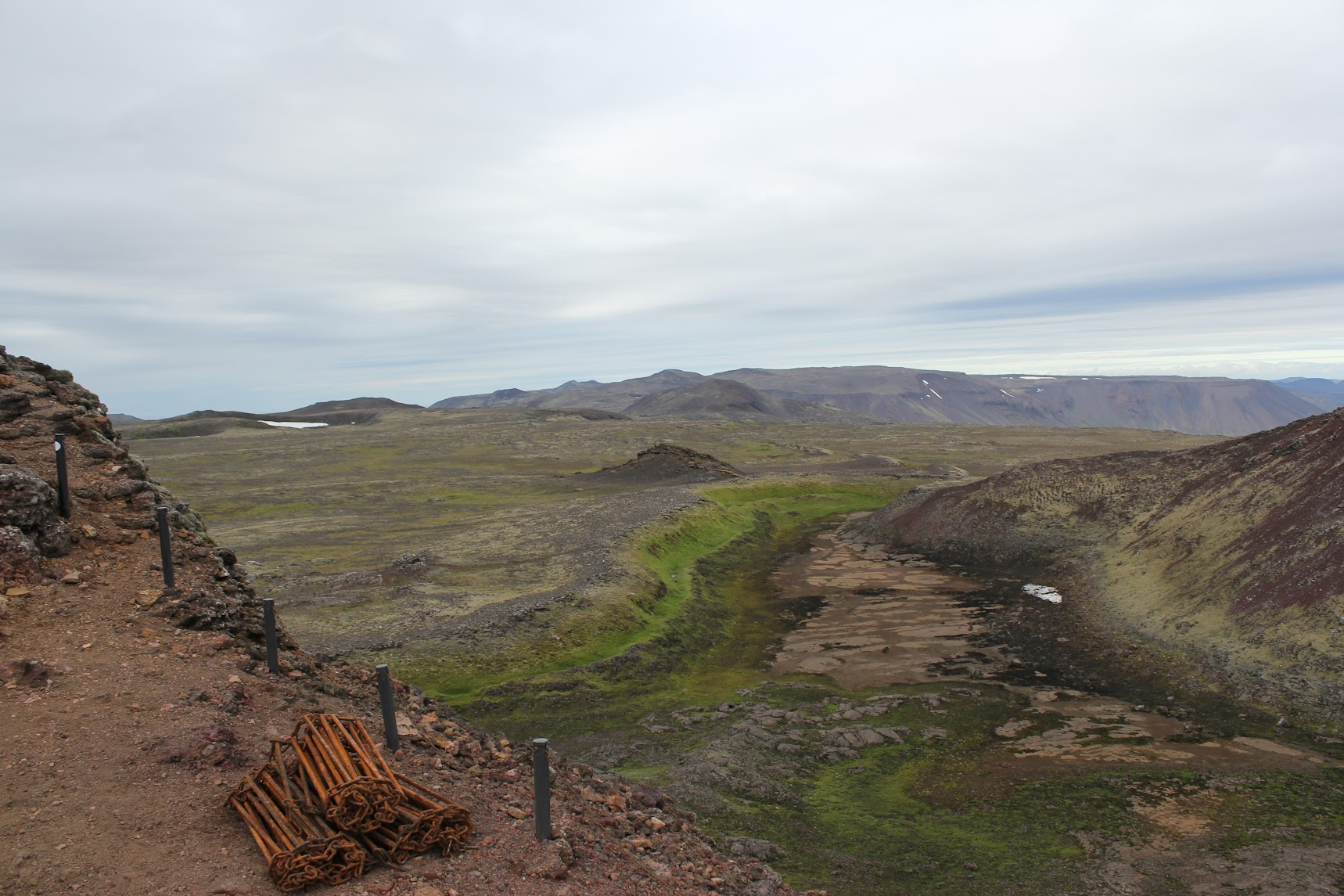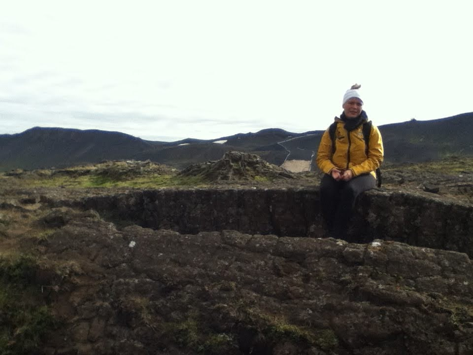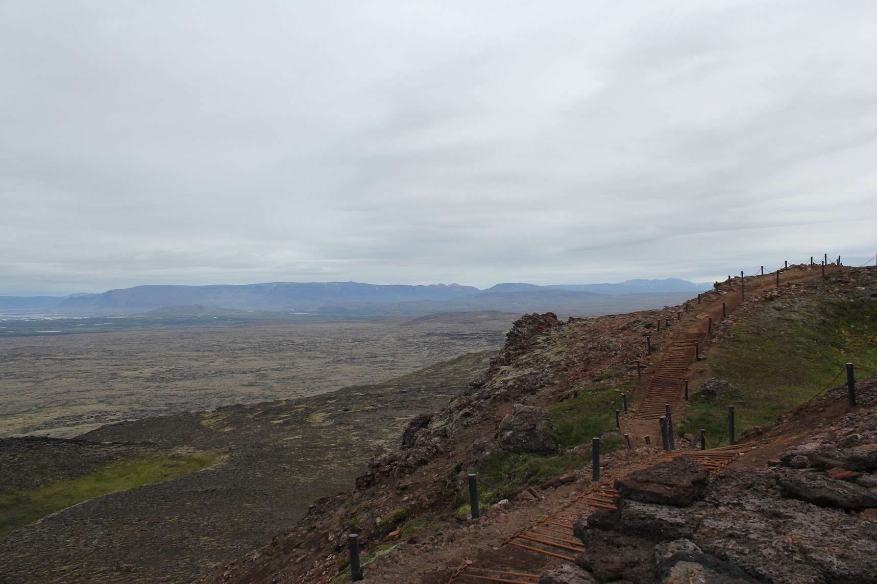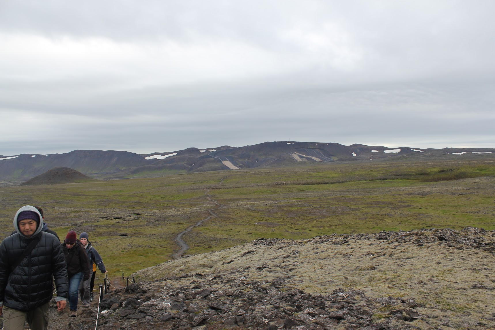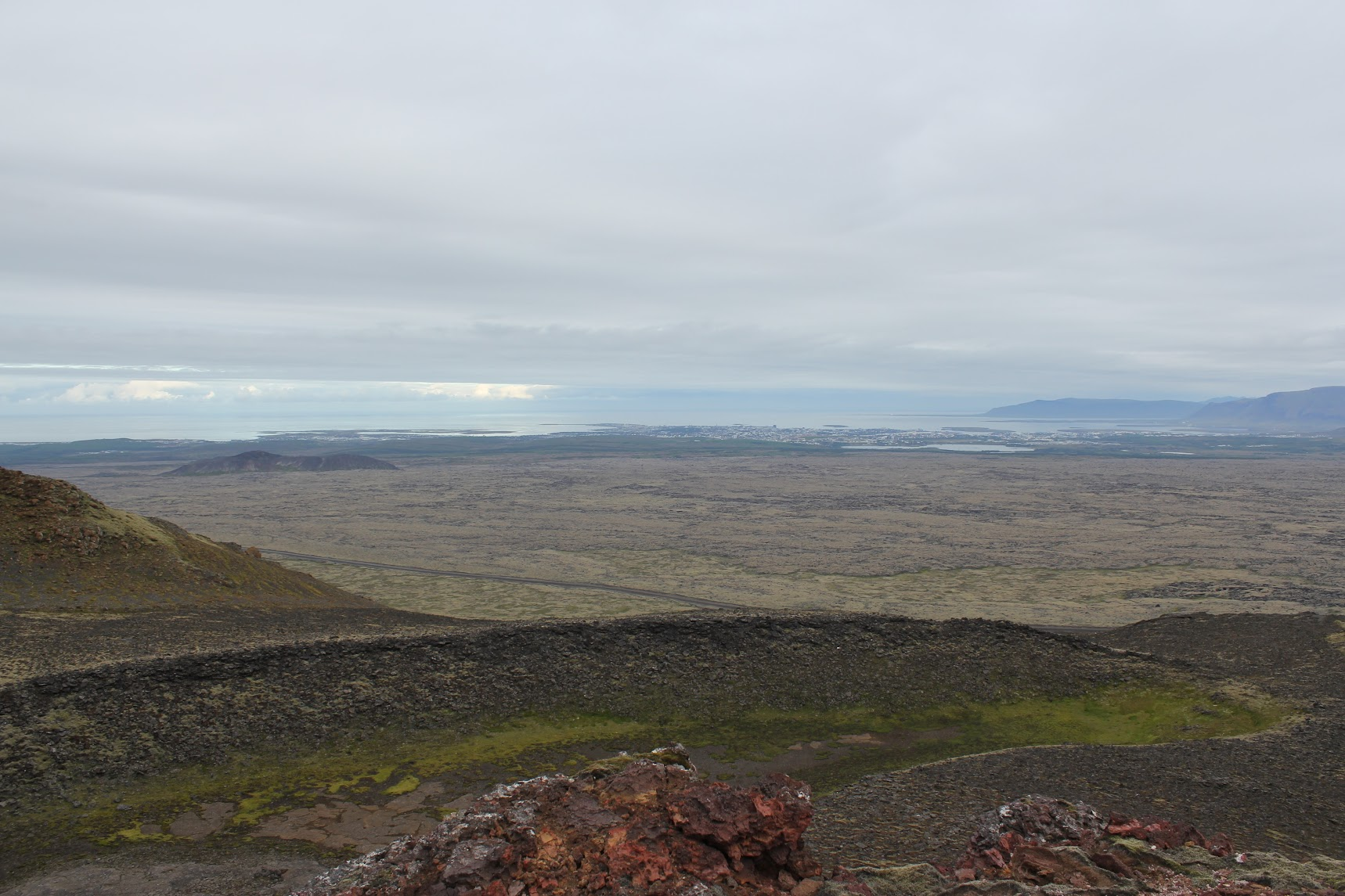 Ascending the small volcano, with an excellent view of Reykjavík