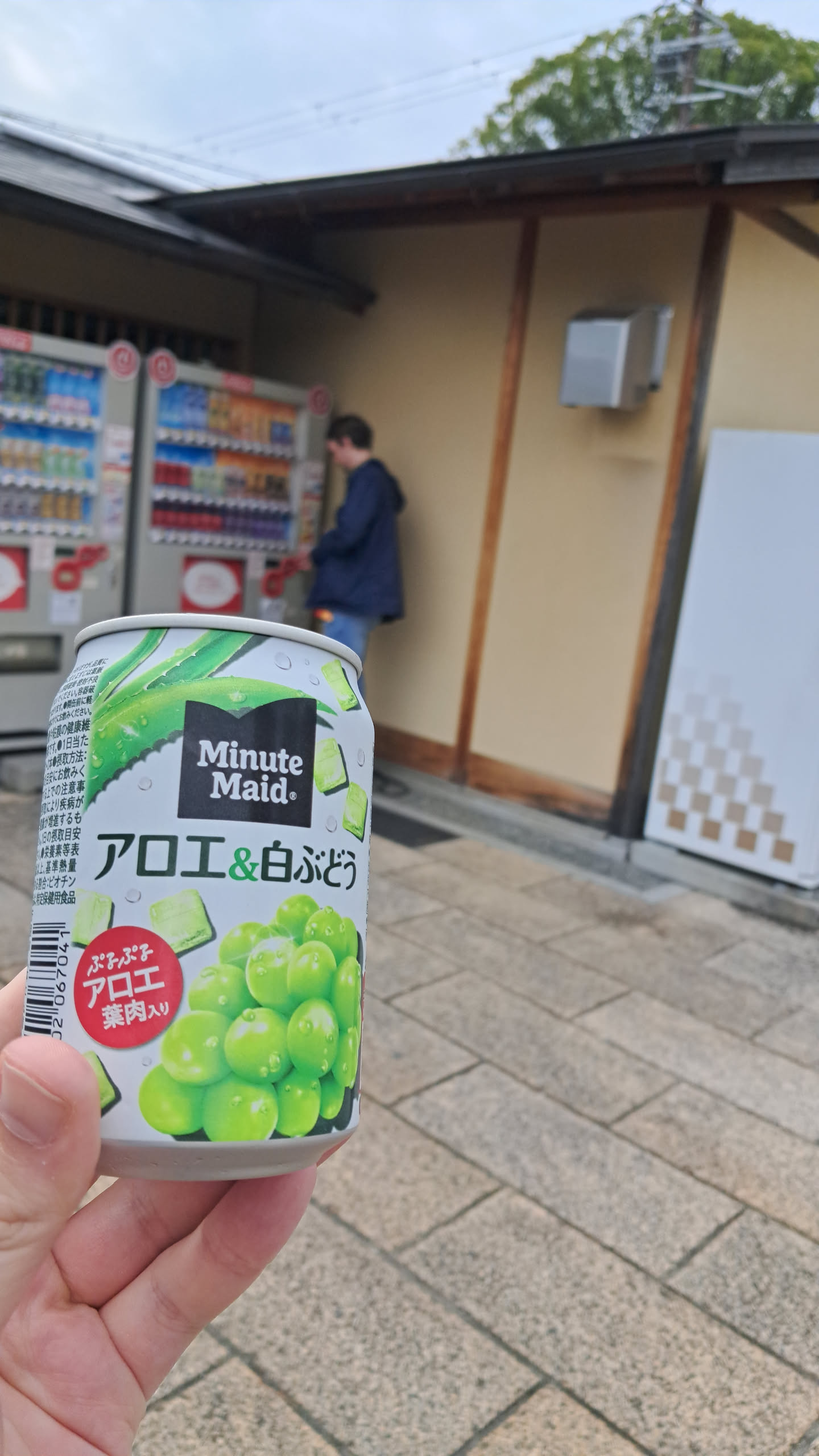 After multiple trains and busses, we arrived at the entrance of Kinkaku-ji. I found the same building we had stopped at before where I first tried Aloe juice. I got the same kind of aloe juice from the same vending machine.