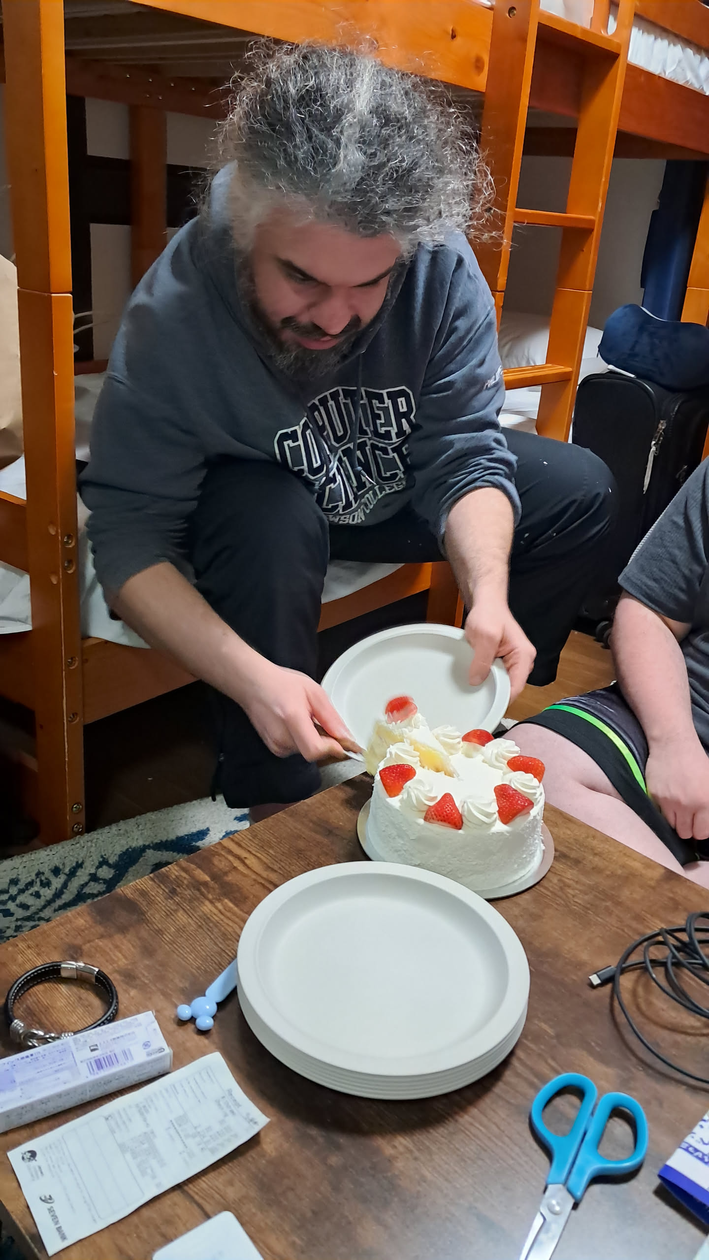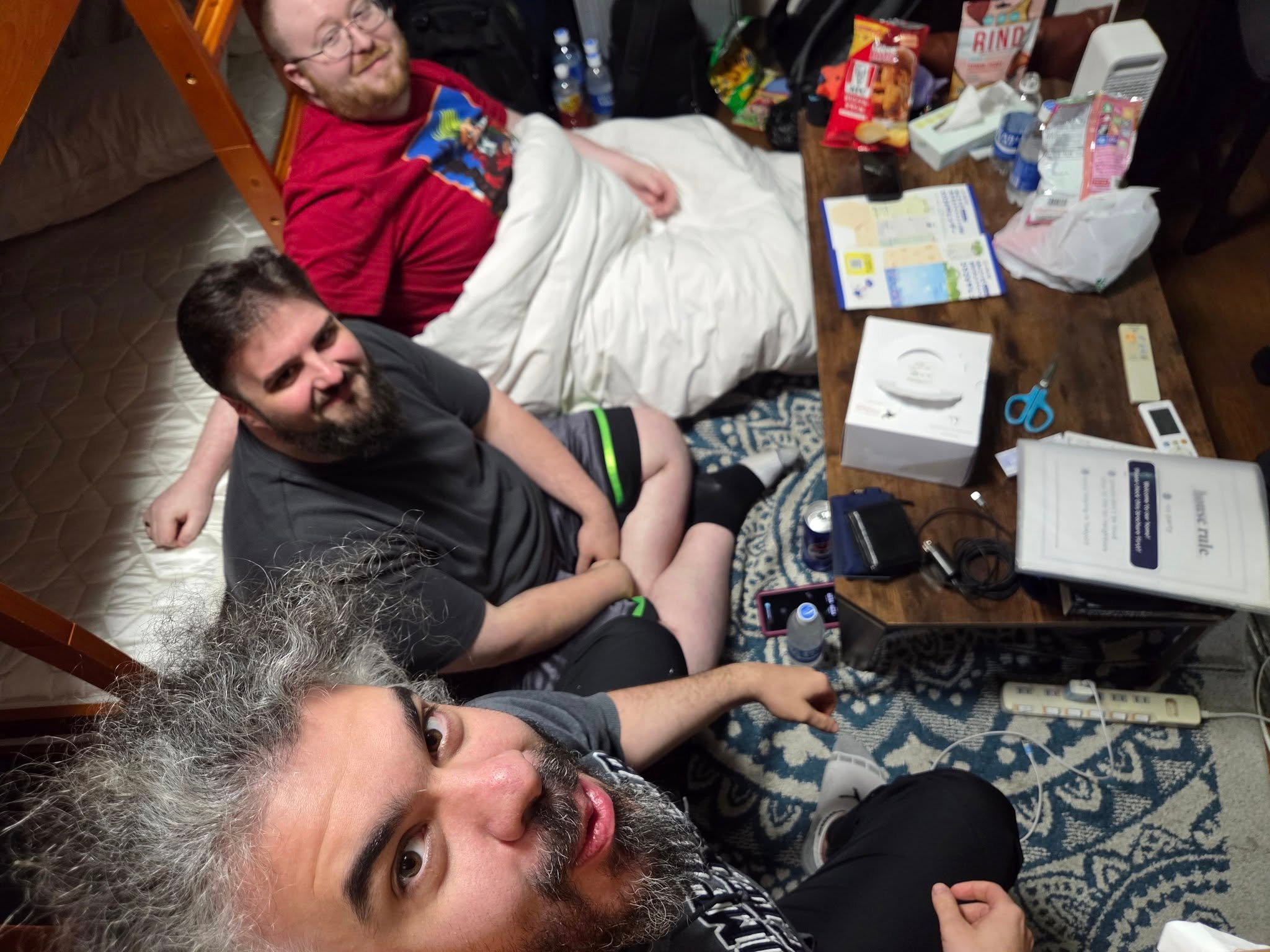Back at the house, the rest of the group were up, while someone was out getting breakfast for everyone at the nearby convenience store. They got some stuff for me too, and we had breakfast.