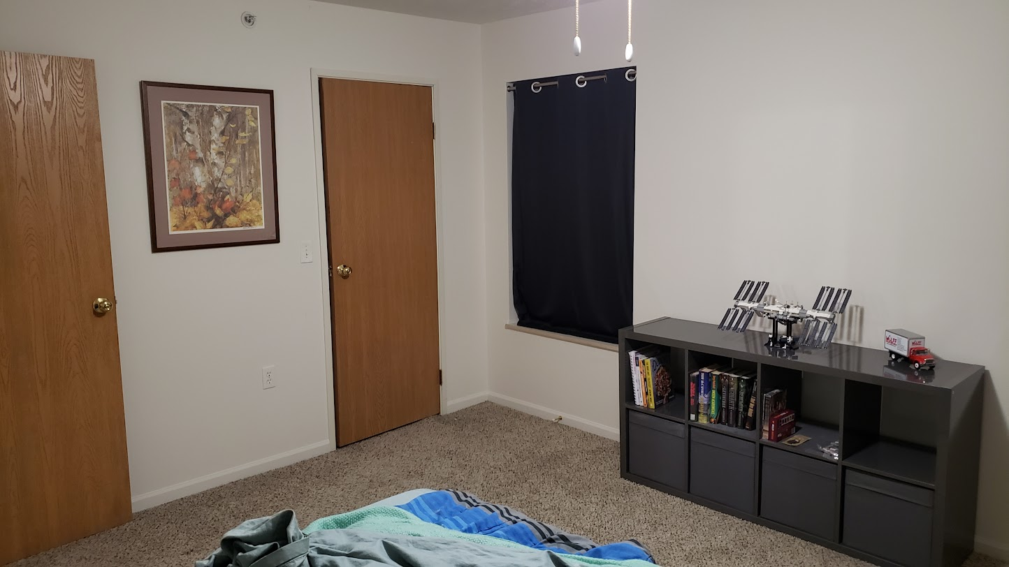 As the next step of decorating my apartment, I got some drywall anchors and hung the painting that’s been sitting on my bedroom shelf.