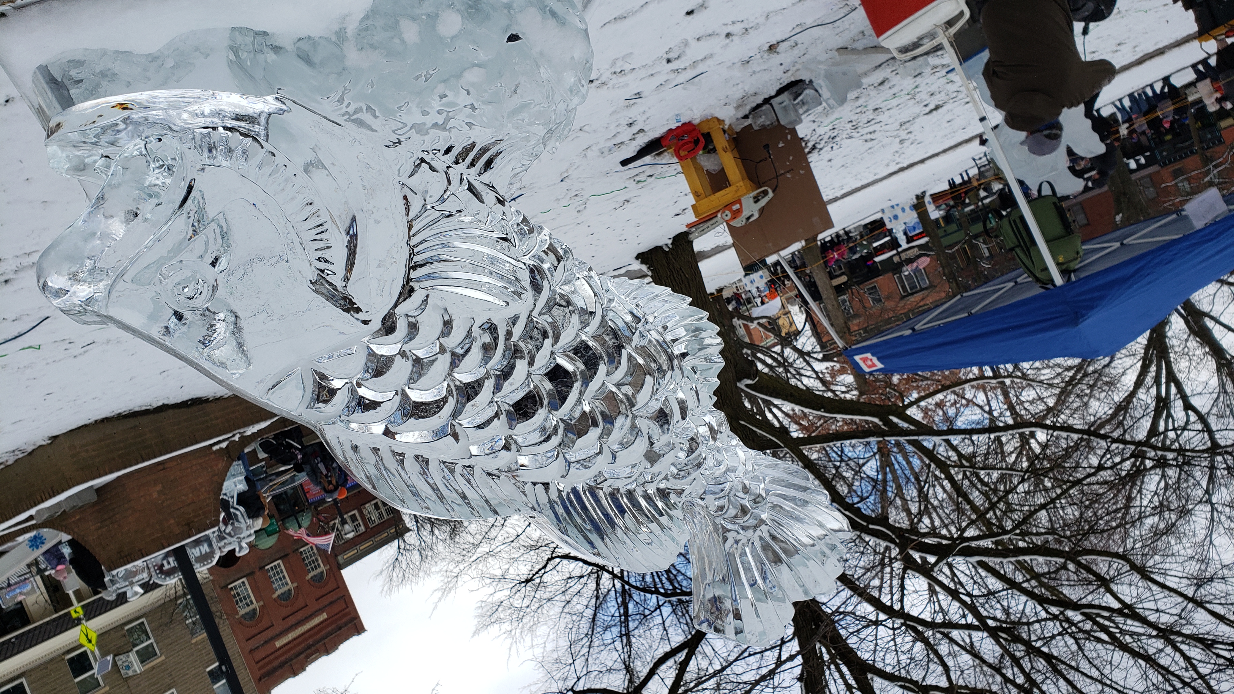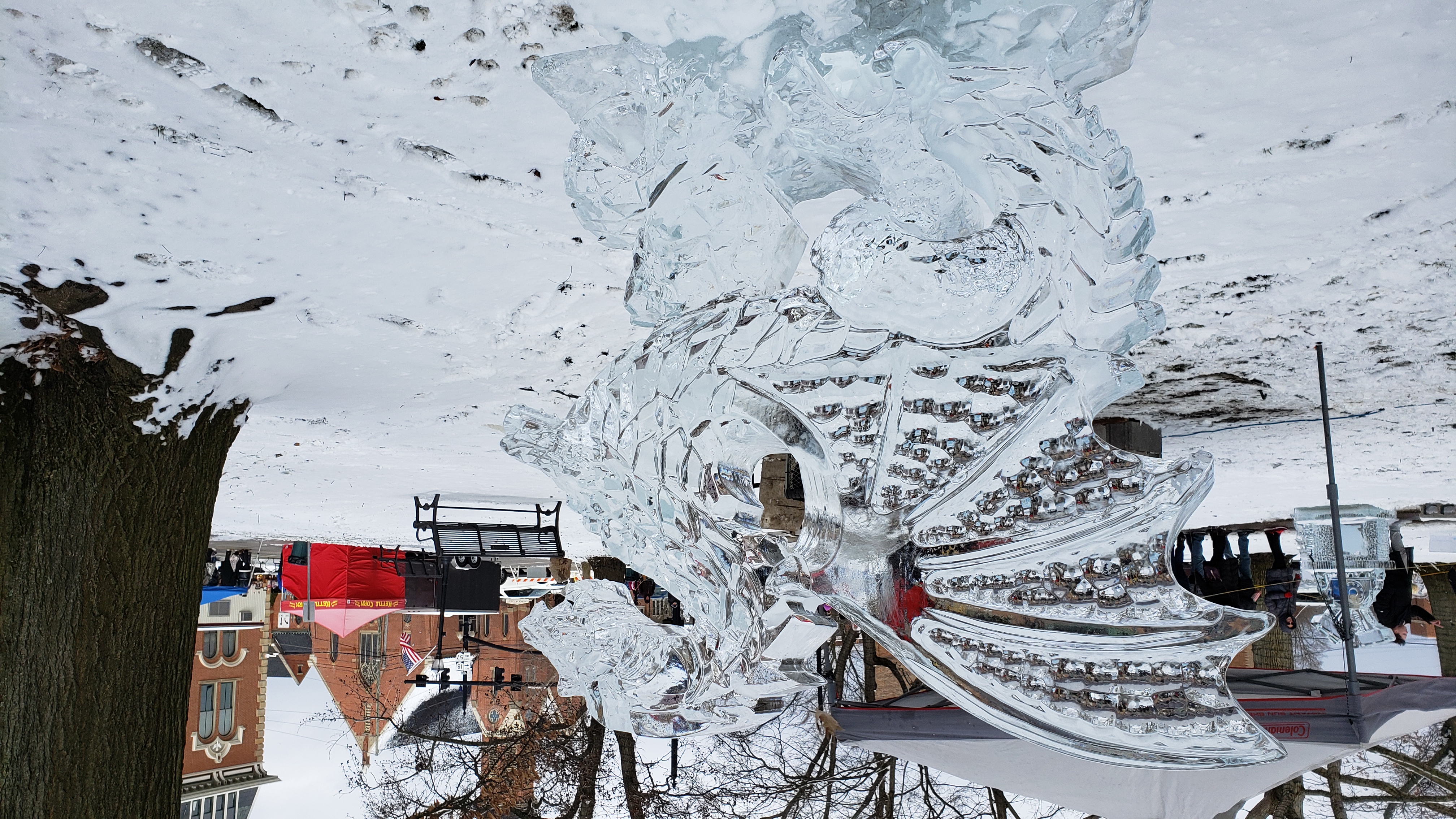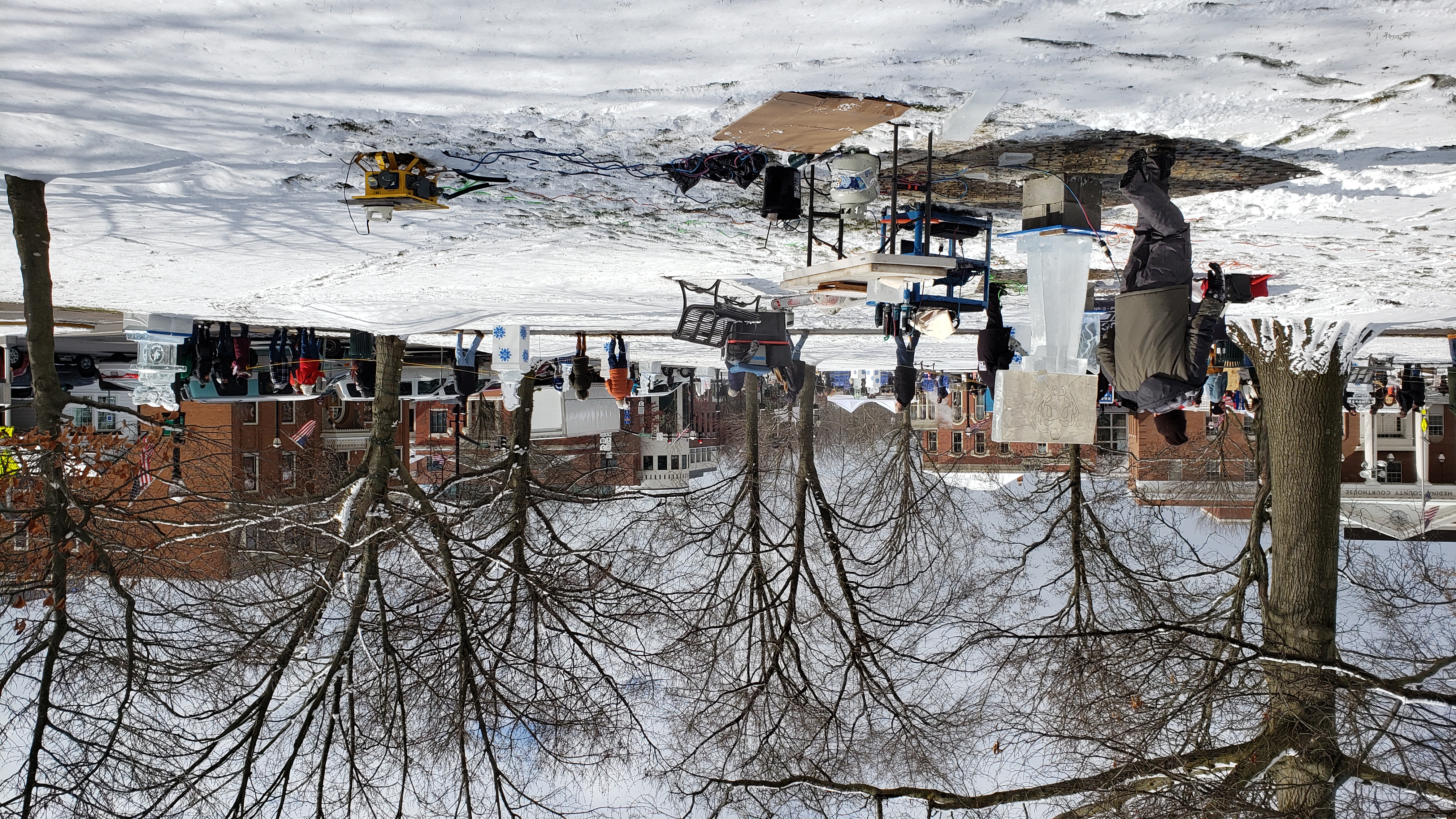 On the way back, I passed through Medina, and saw there were a bunch of ice sculptures set up in the square. After delivering the chair, I decided to stop by on the way home.