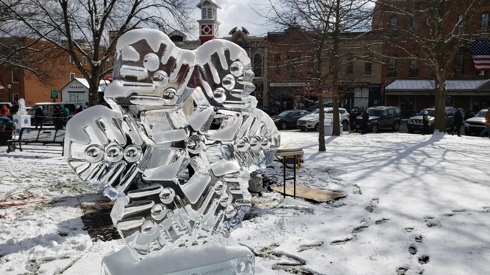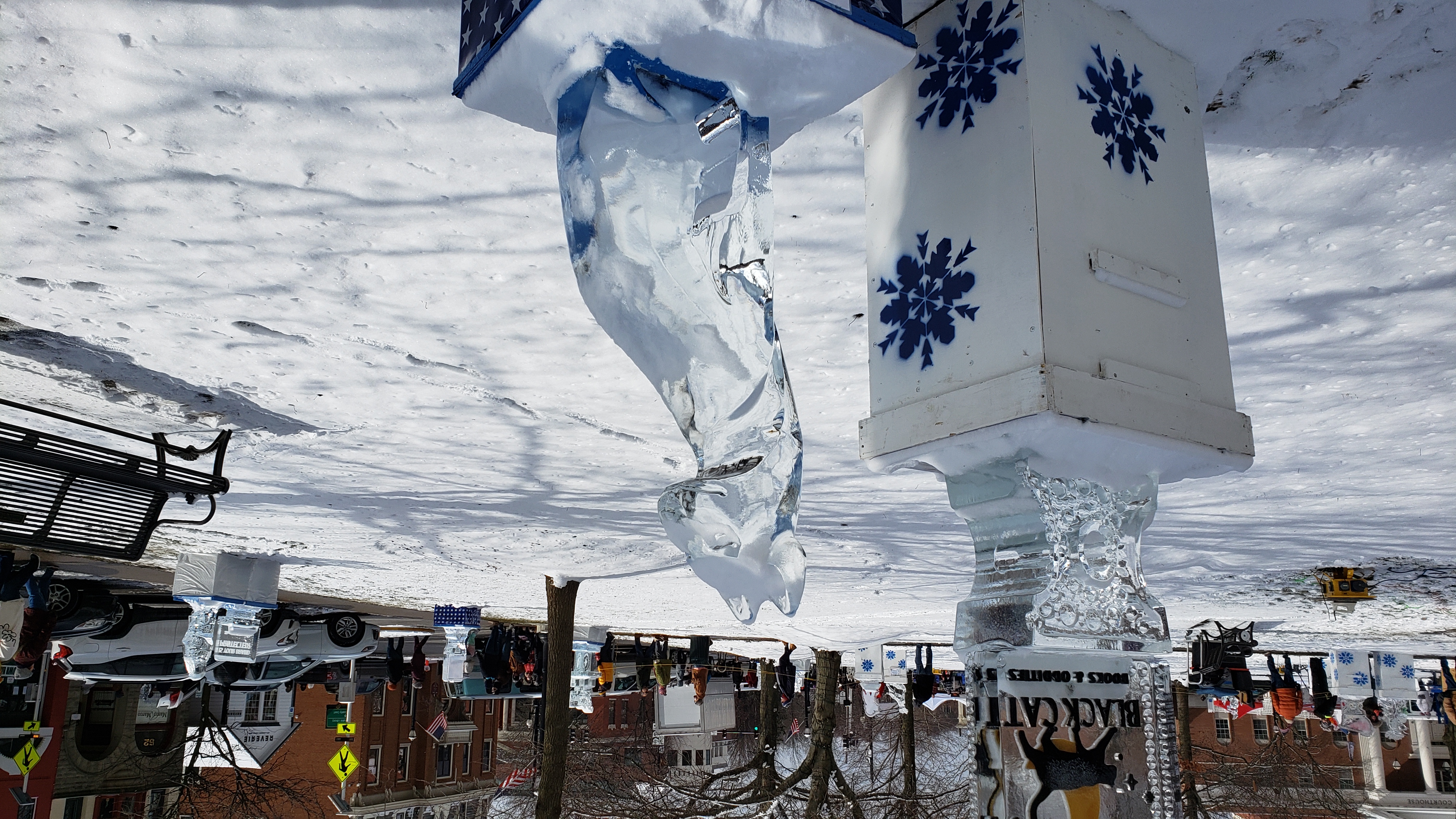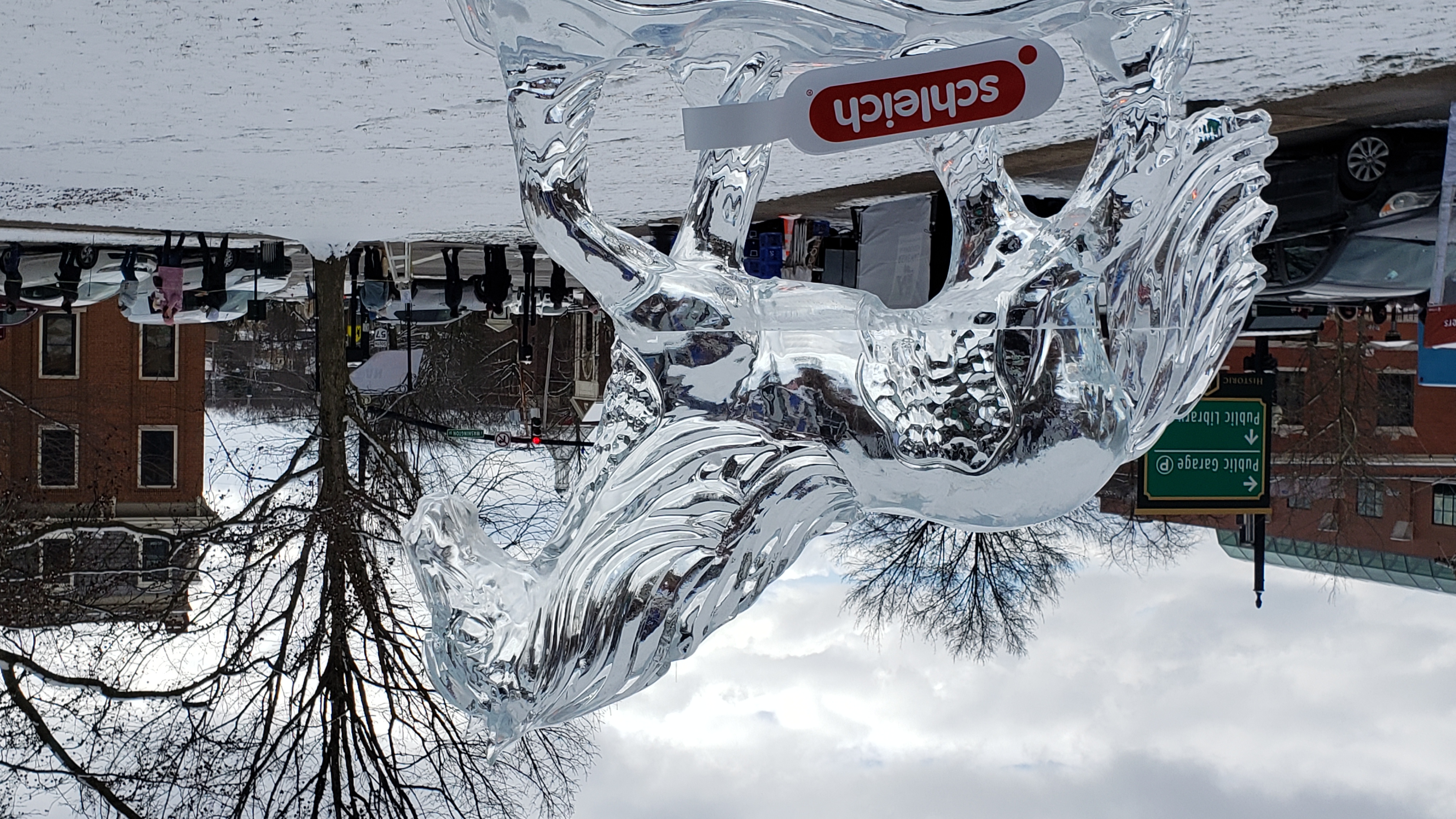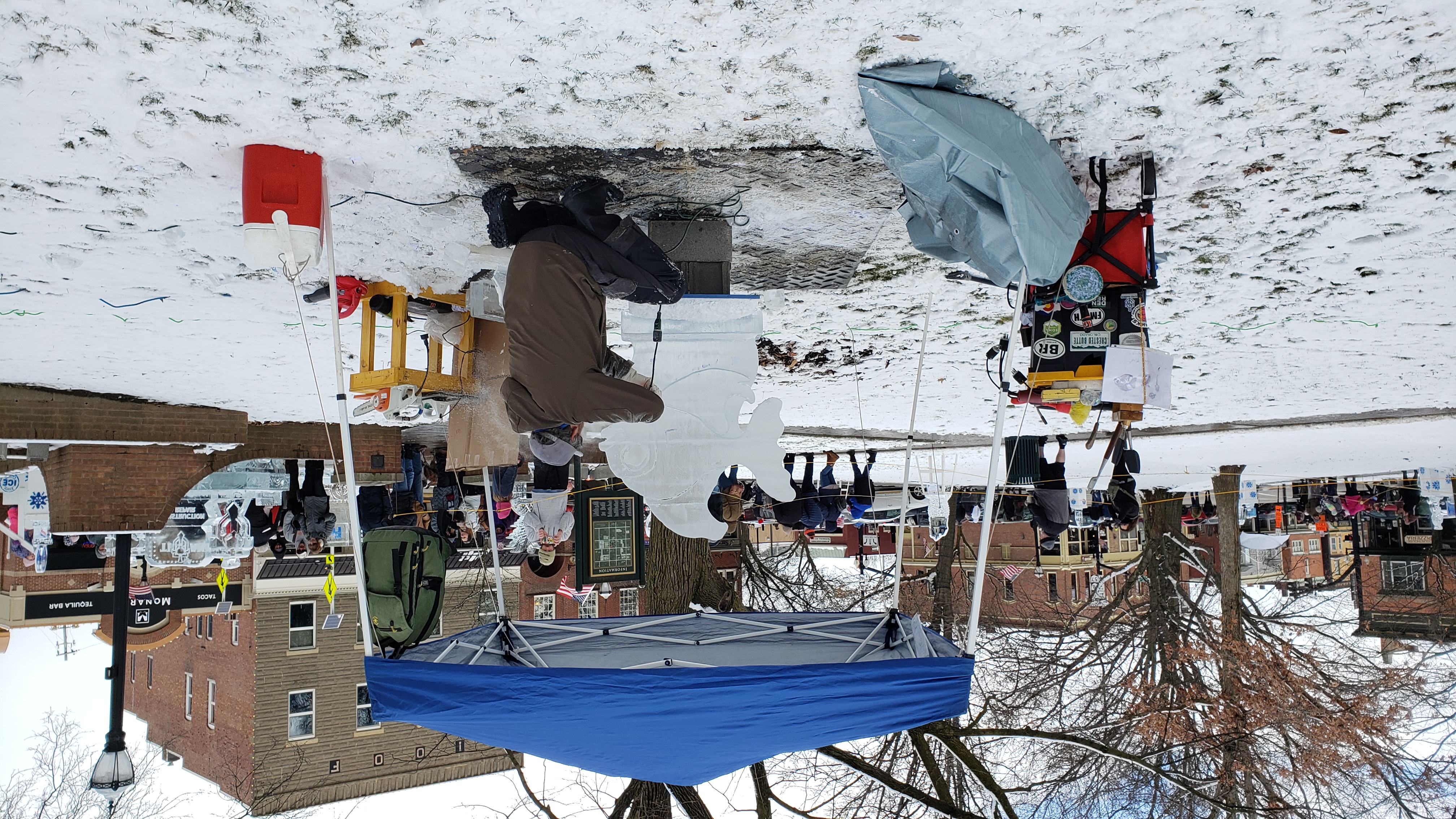 On the way back, I passed through Medina, and saw there were a bunch of ice sculptures set up in the square. After delivering the chair, I decided to stop by on the way home.