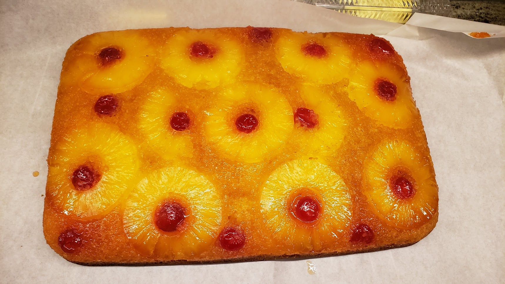 For dinner, we had brussel sprouts and pineapple upside down cake.