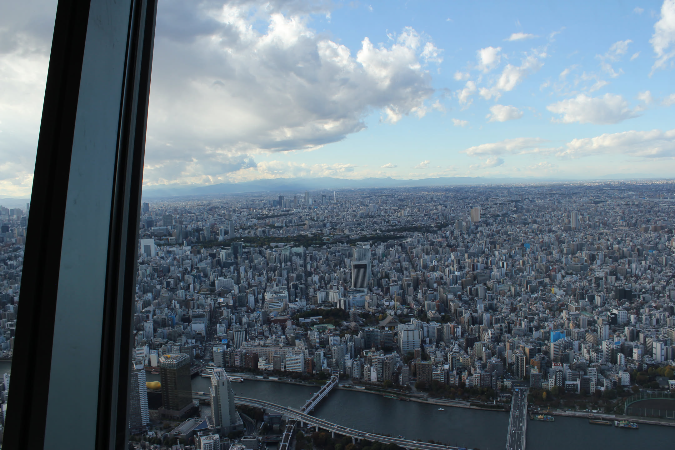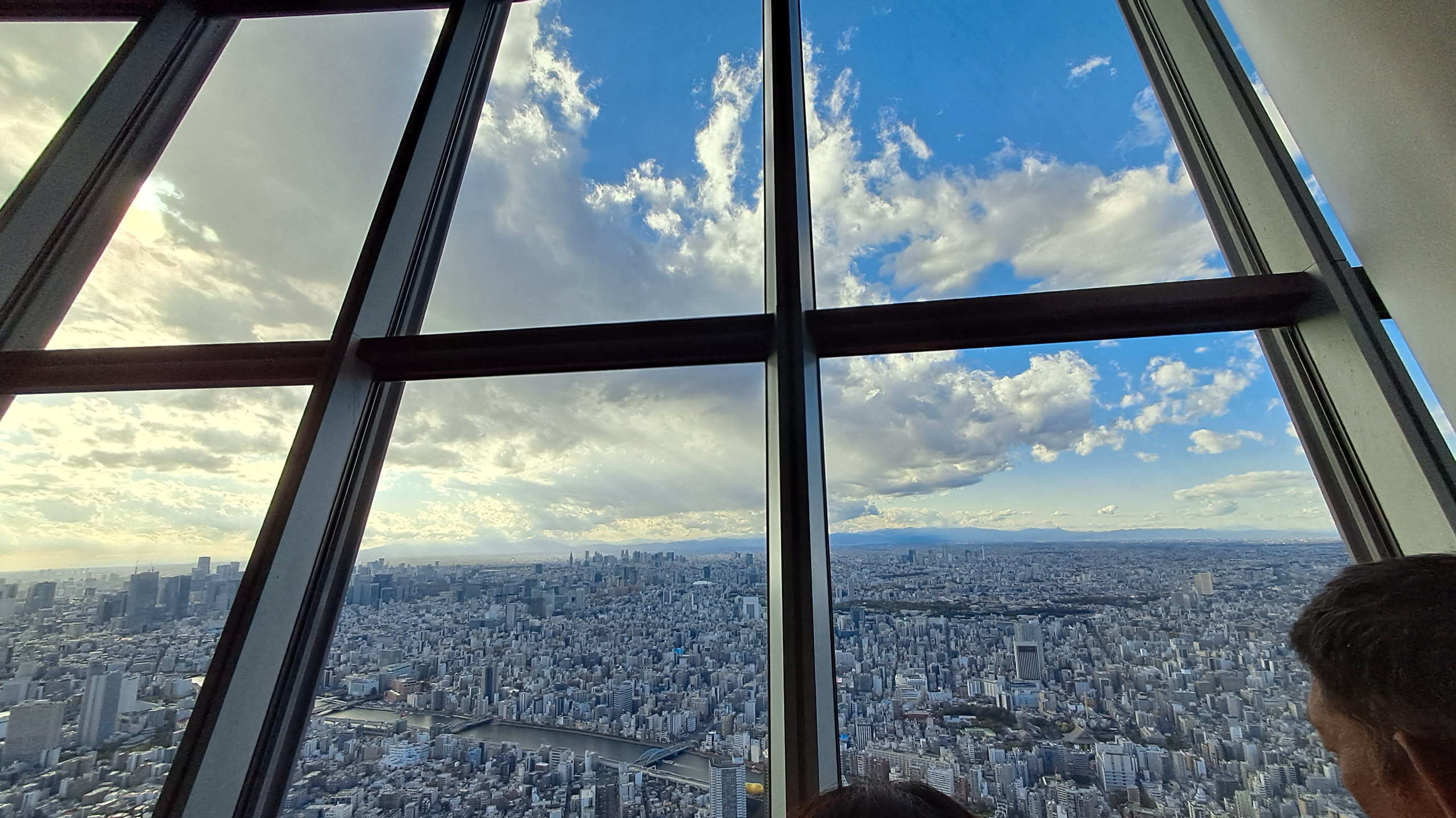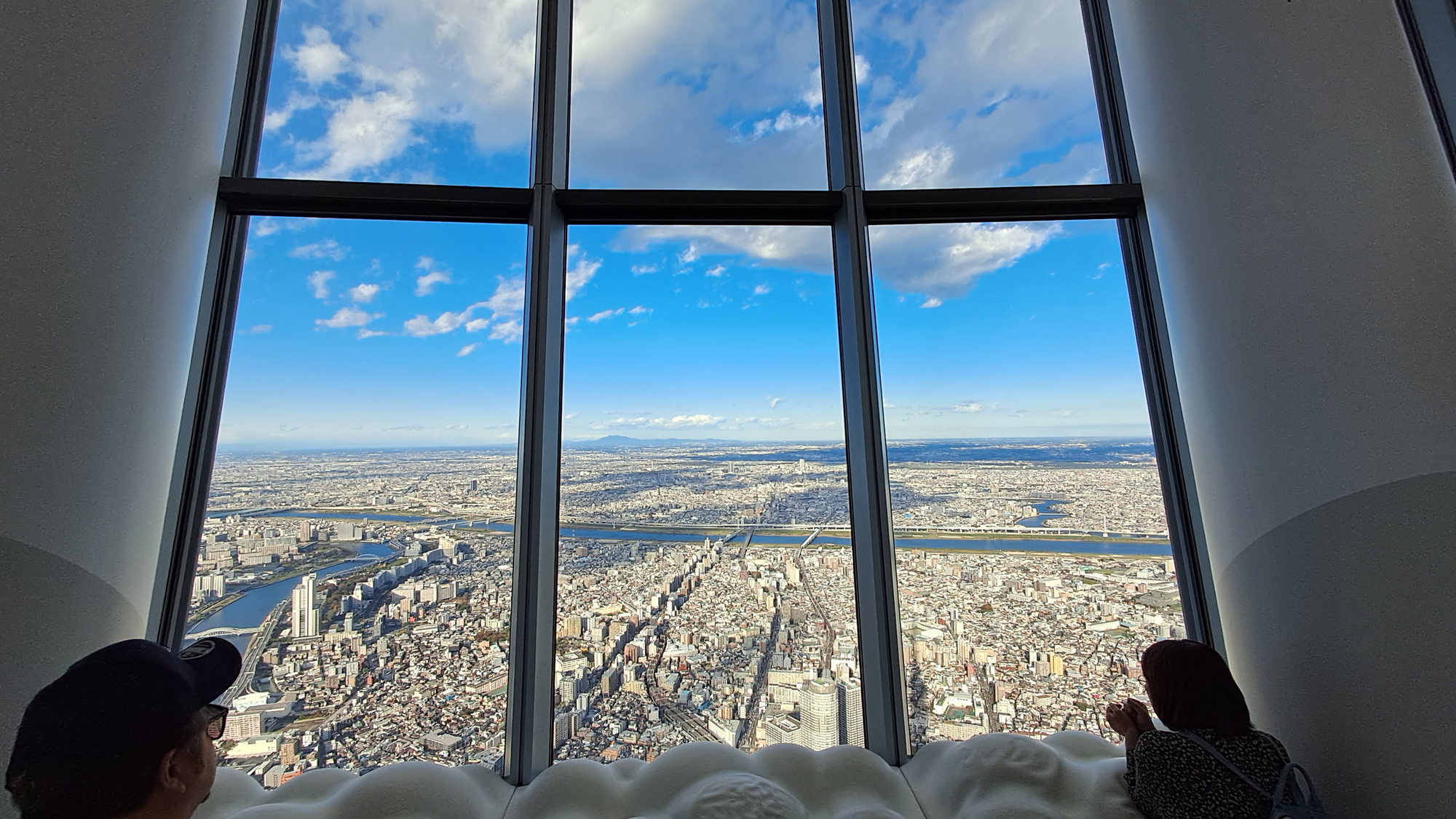 The Skytree had 2 decks, and the tickets we got included both, so after taking in the view from the slightly lower deck, we took another elevator to the slightly higher deck.