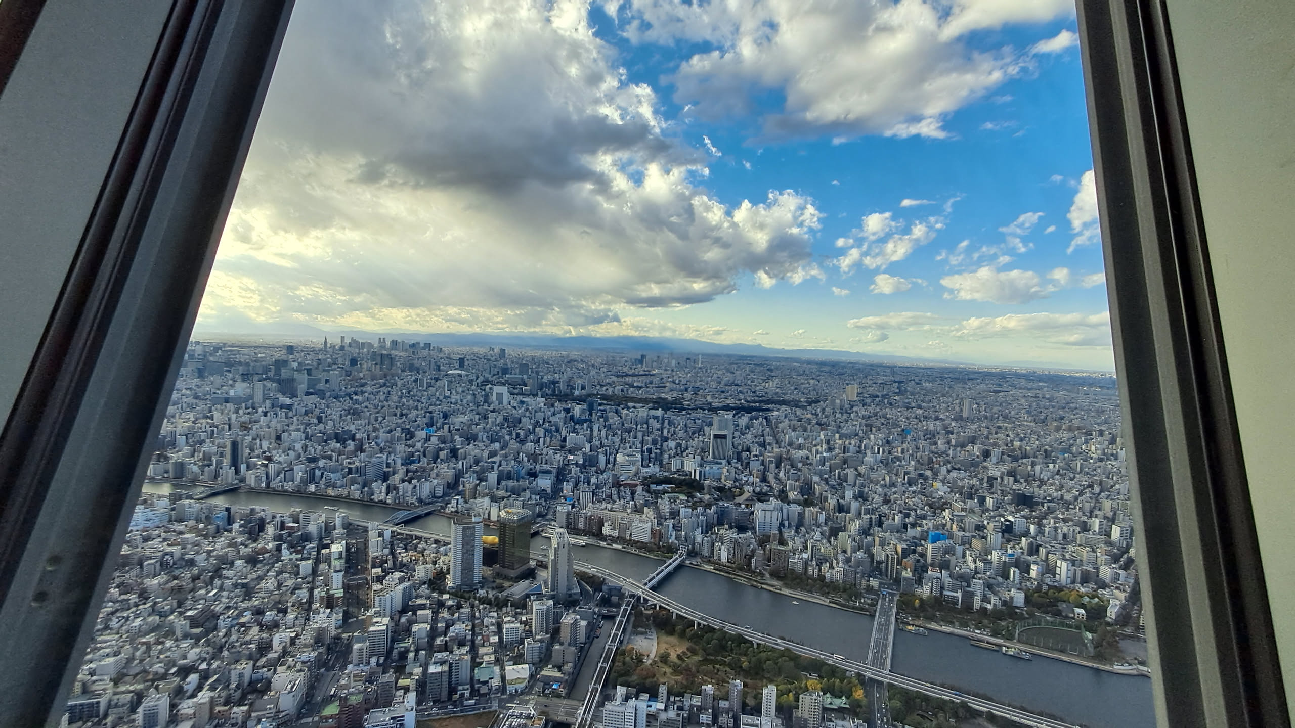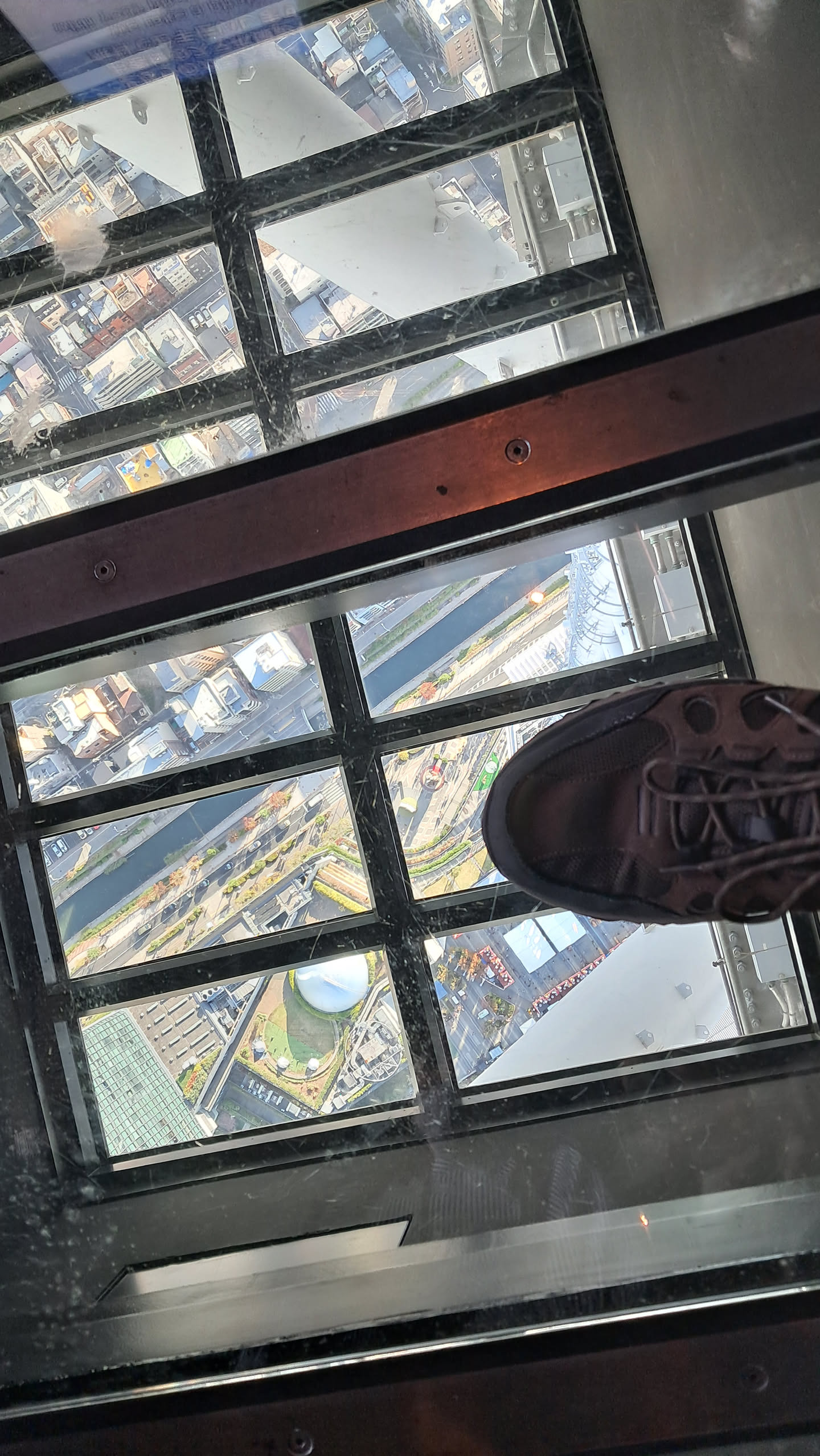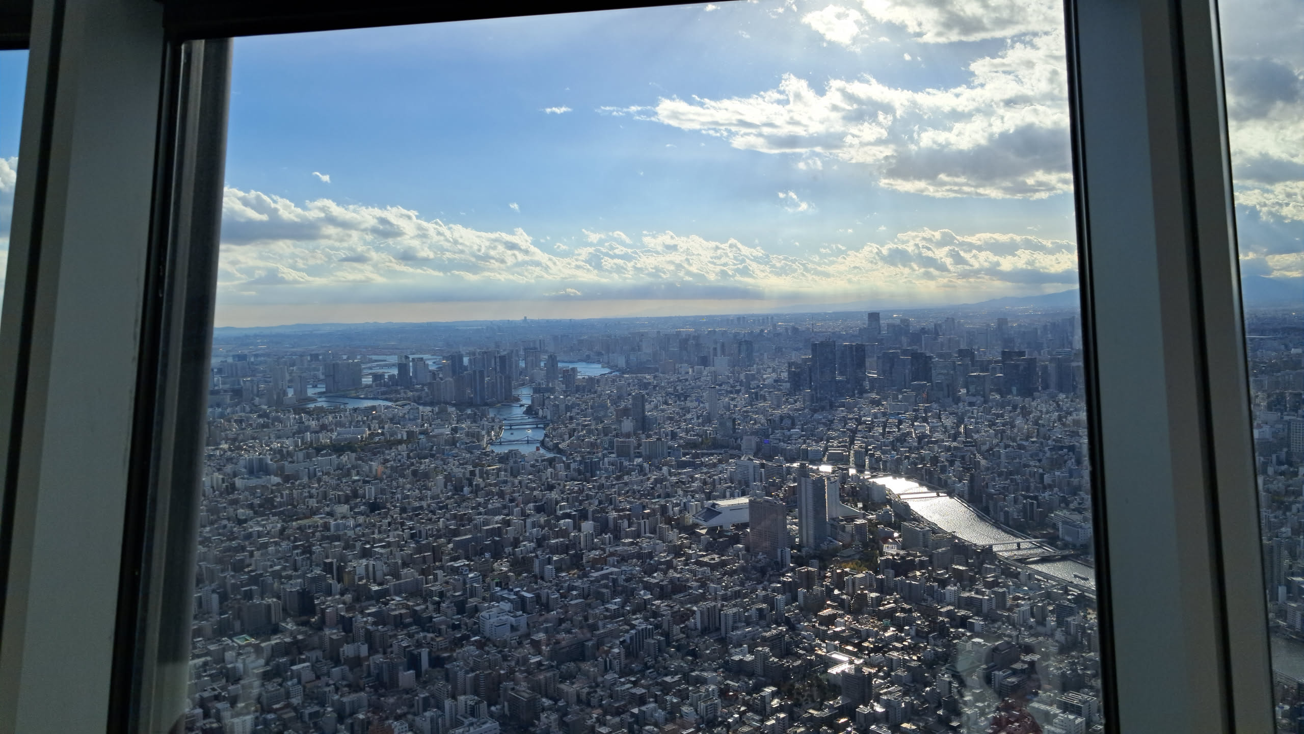 The Skytree had 2 decks, and the tickets we got included both, so after taking in the view from the slightly lower deck, we took another elevator to the slightly higher deck.