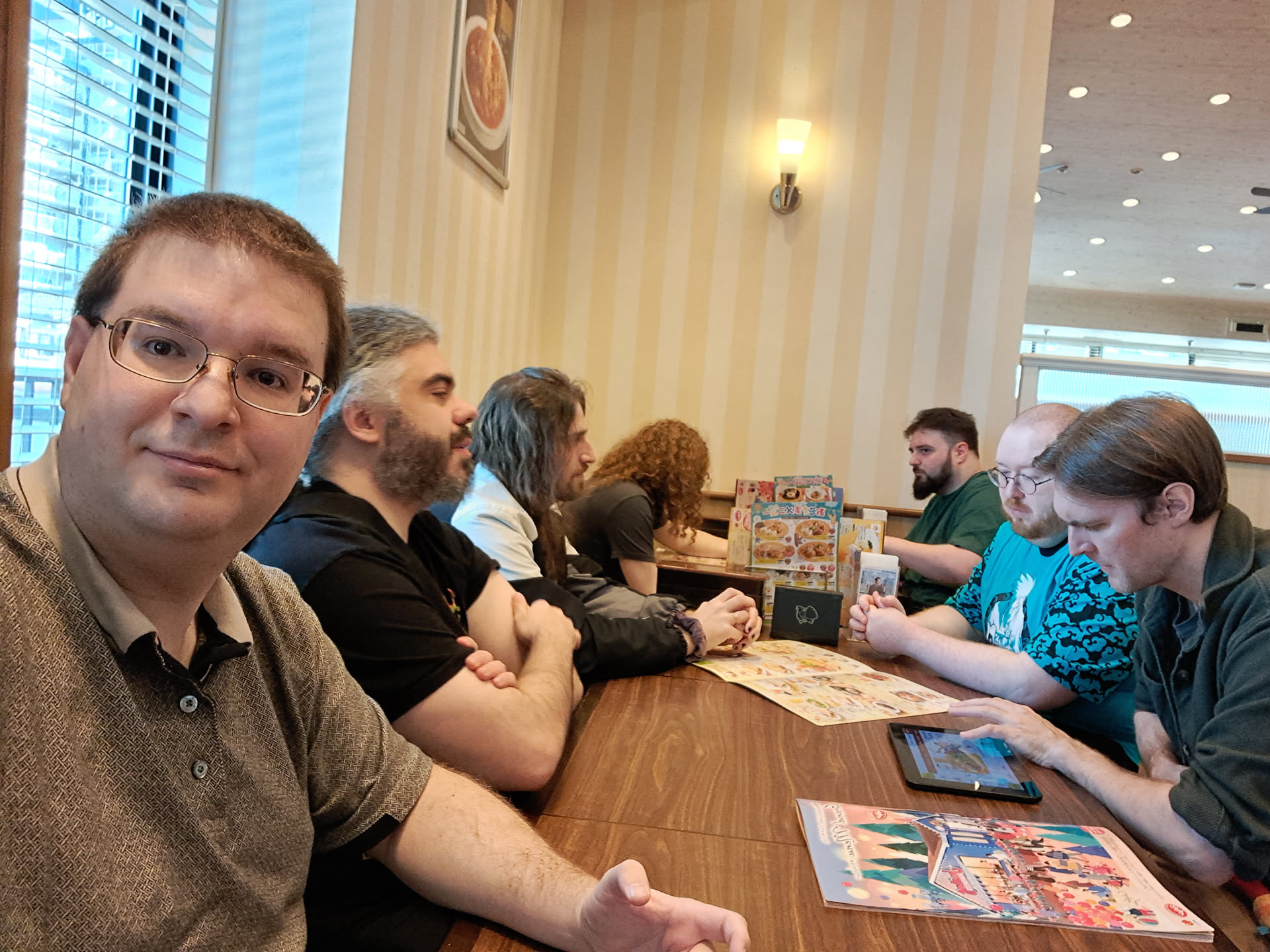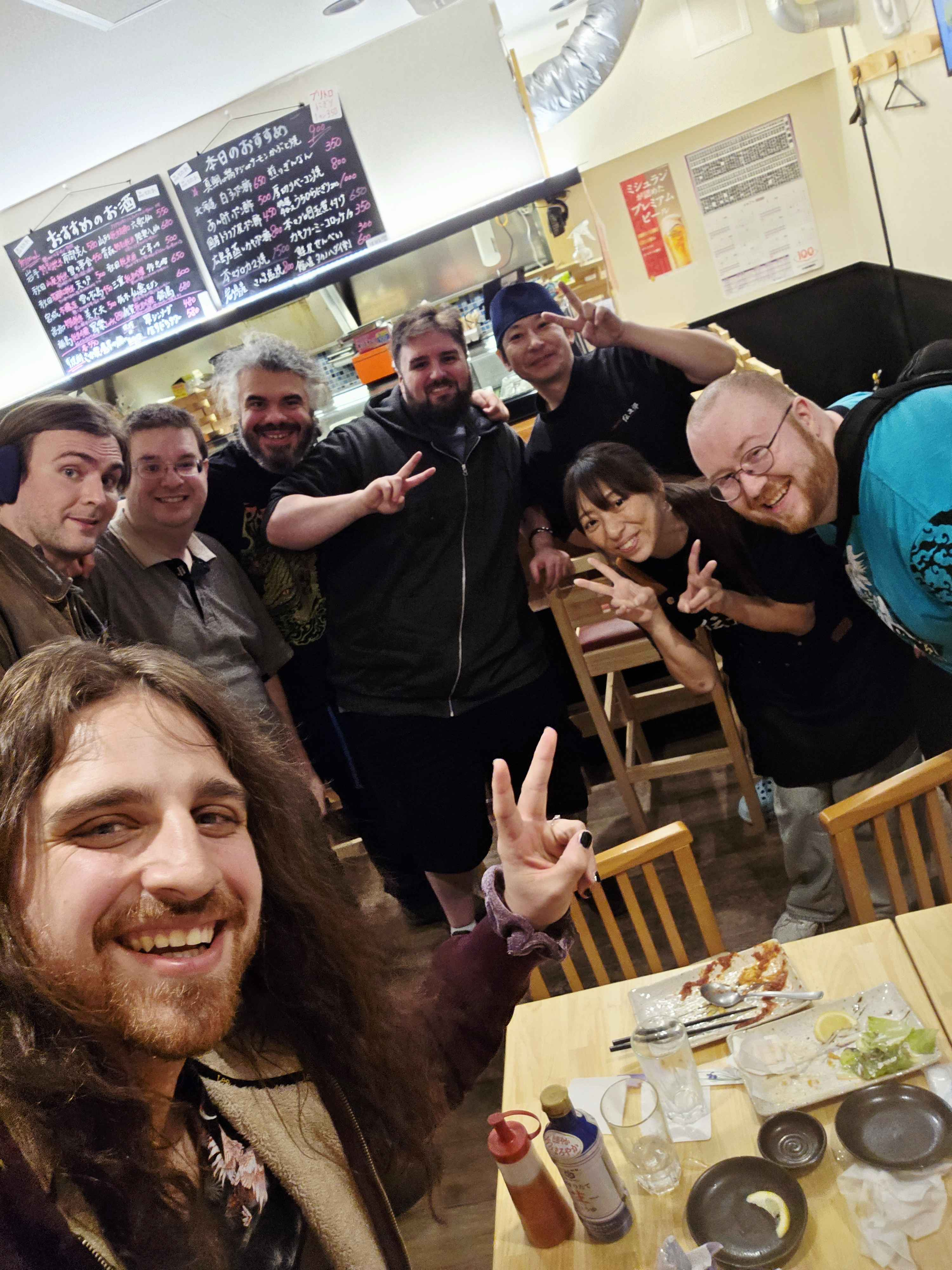 We made our way down to meet up with the rest. Apparently the Kirby cafe required a reservation, so they had gone to the Attack on titan cage instead. Definitely not beating the "being on the menu" allegations.