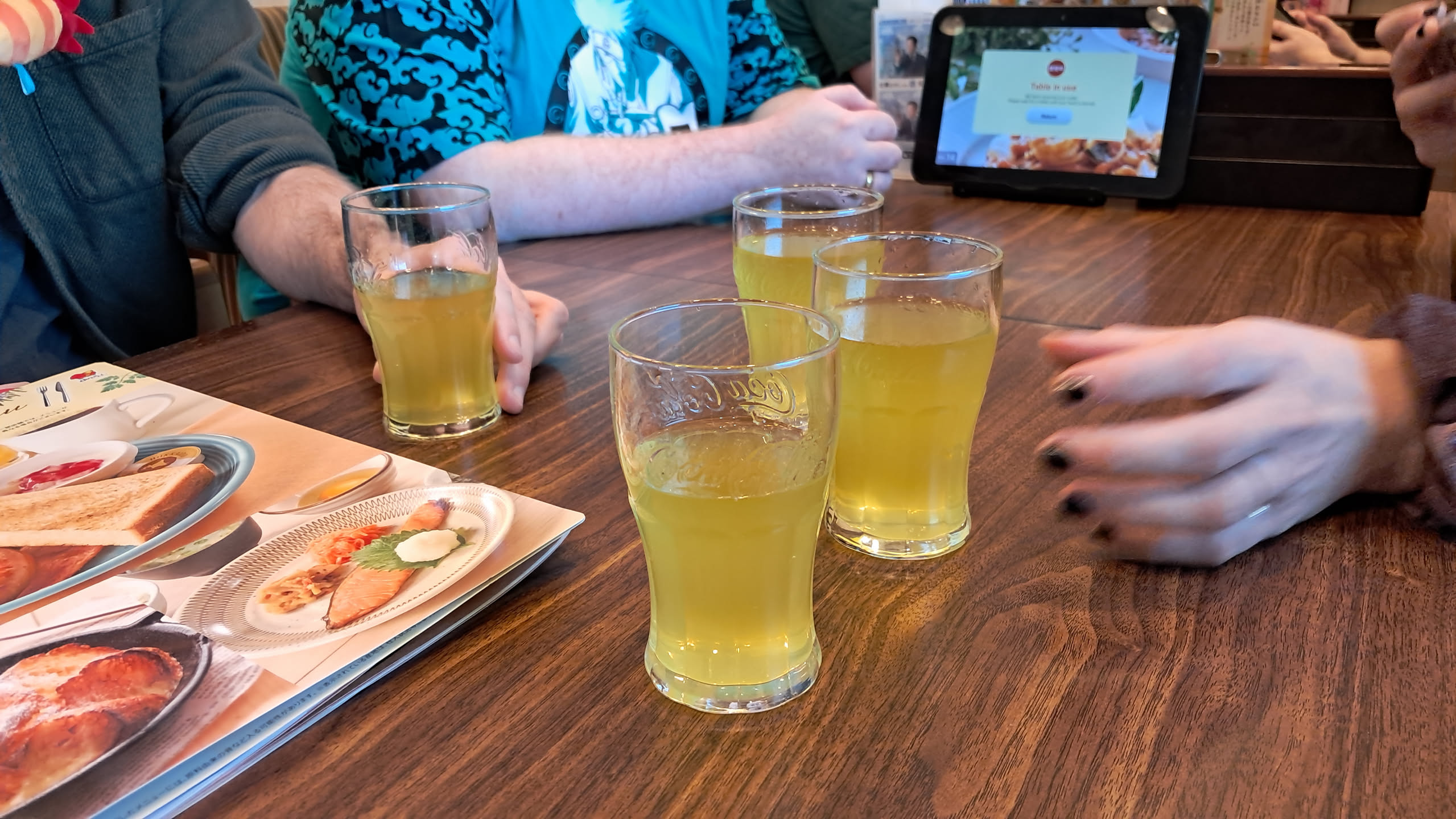 We apologized and left, and walked a bit further and found the correct place. There, the server seemed immediately welcoming, and even tried to talk to us in broken english. We learned that her name was Akane-chan, and both her and the cook were big anime fans. They even had an artbook of Demon Slayer original sketches.