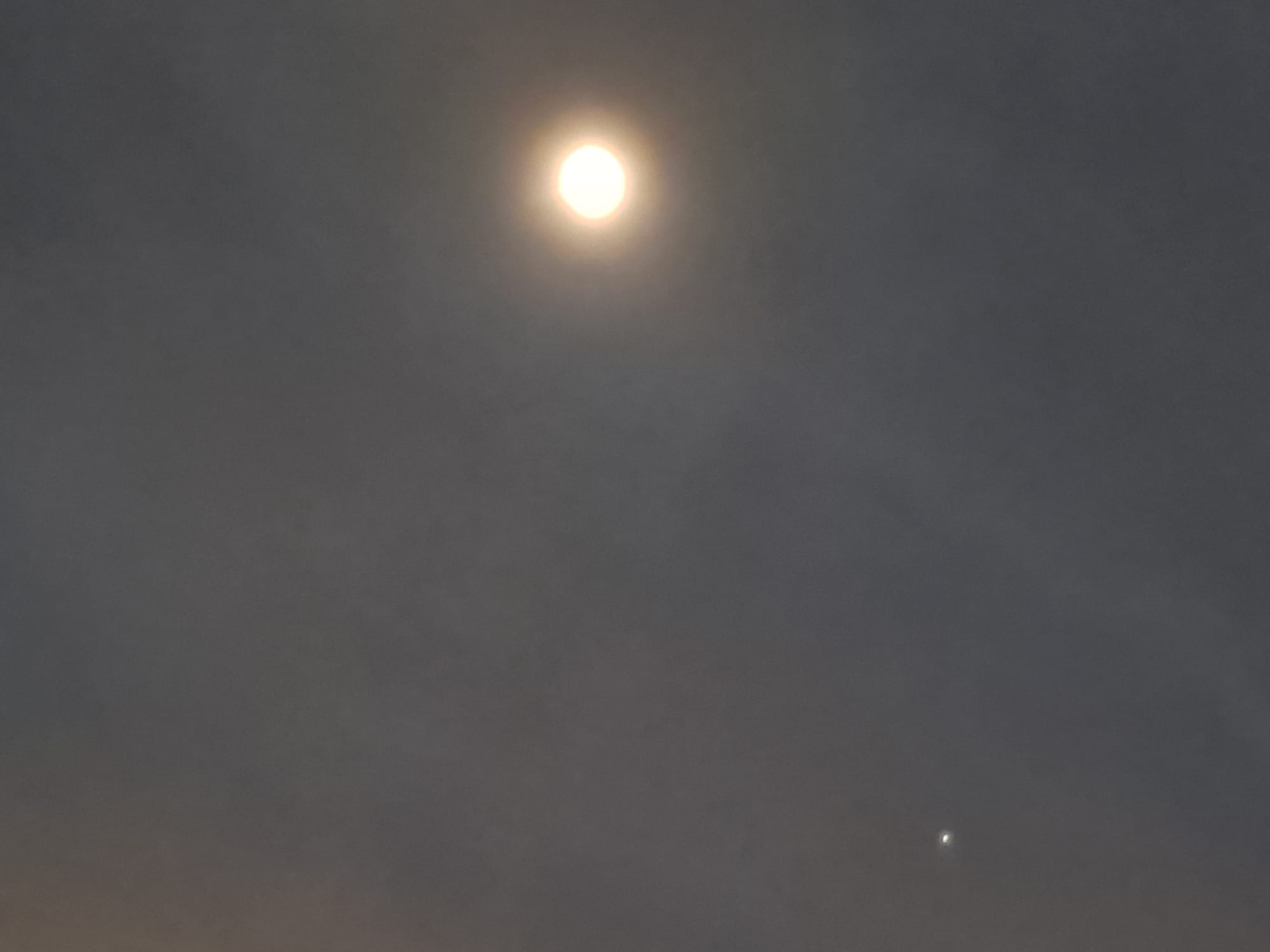 Also, I think the smaller dot is Jupiter, which I read would also be visible.