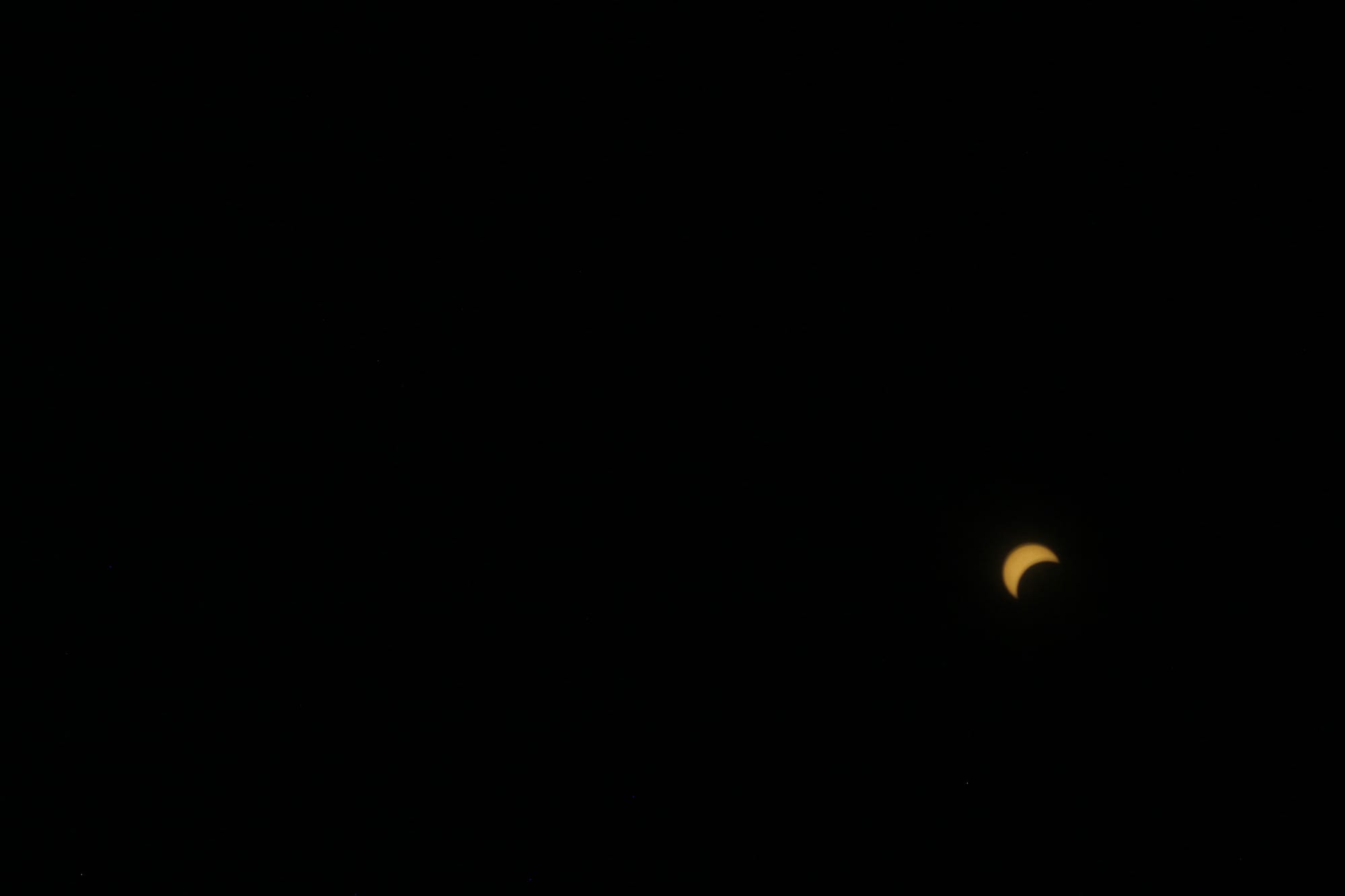 It took awhile to get the settings and aim right, which required a lot of trial and error. One interesting thing I noticed later is that the lens flares on some of the failed pictures show the partial eclipse in their shape.