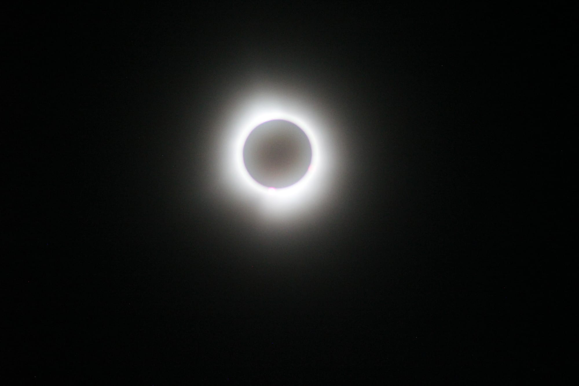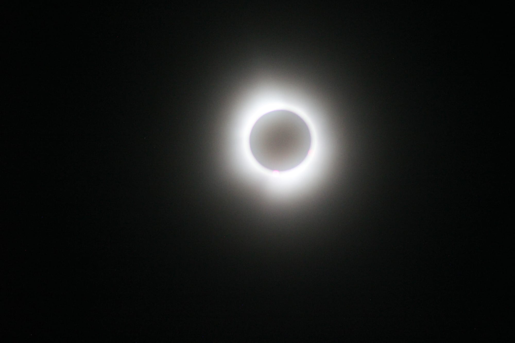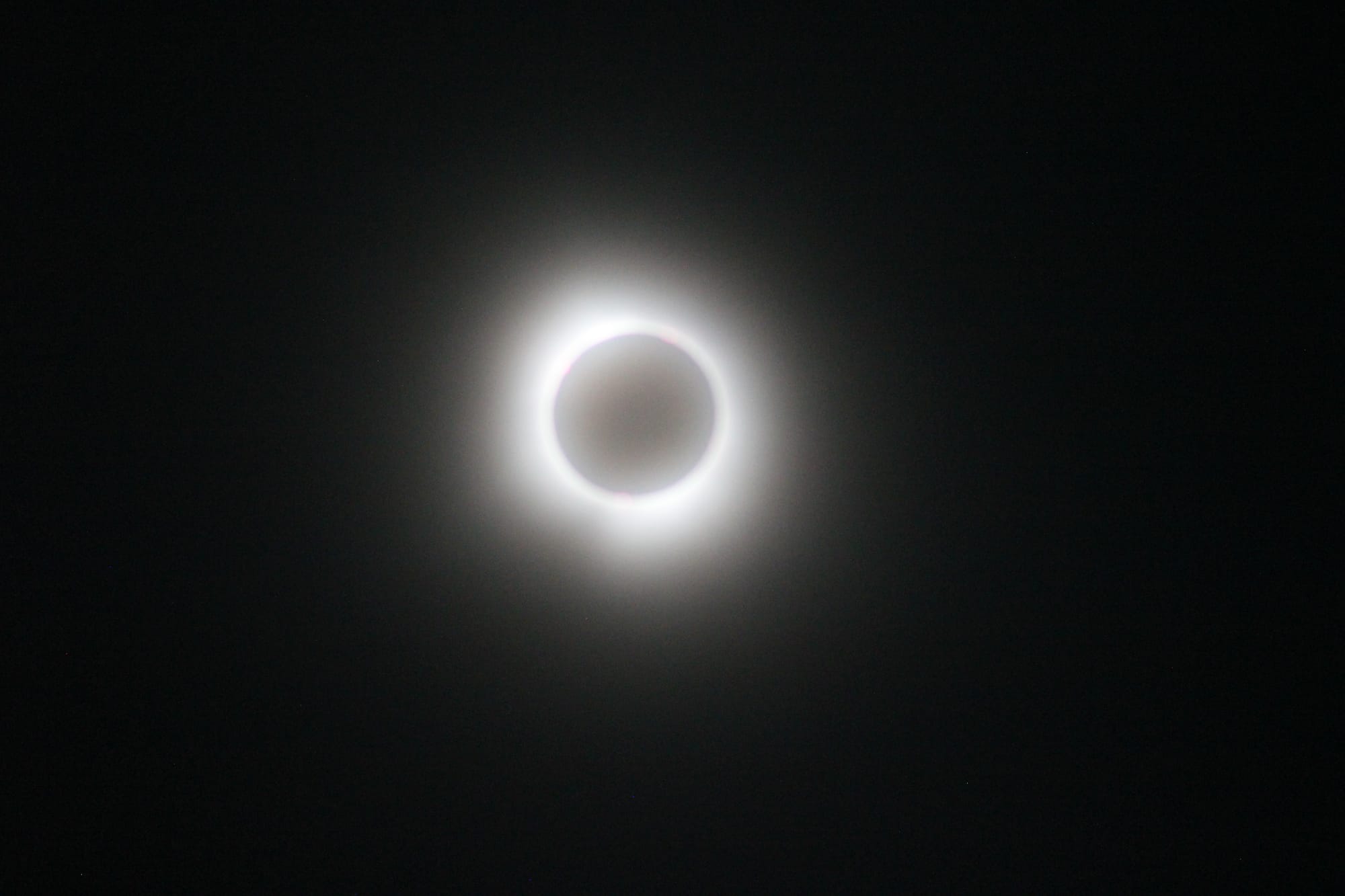 At last, it was time for totality. The whole world became twilight, as the sounds of evening bugs and birds filled the air. It was an incredibly profound experience.